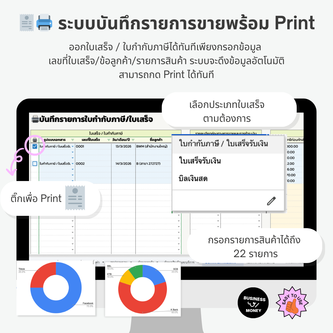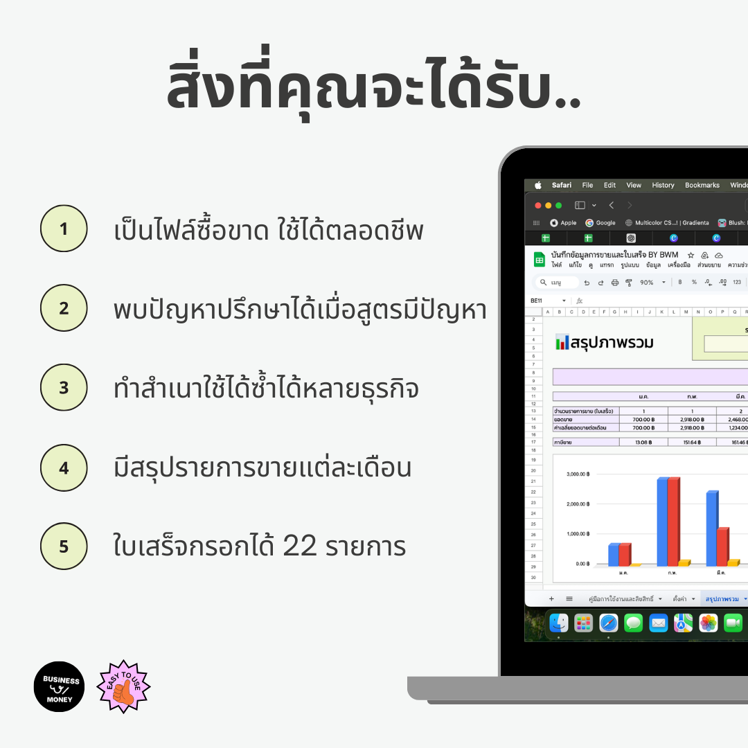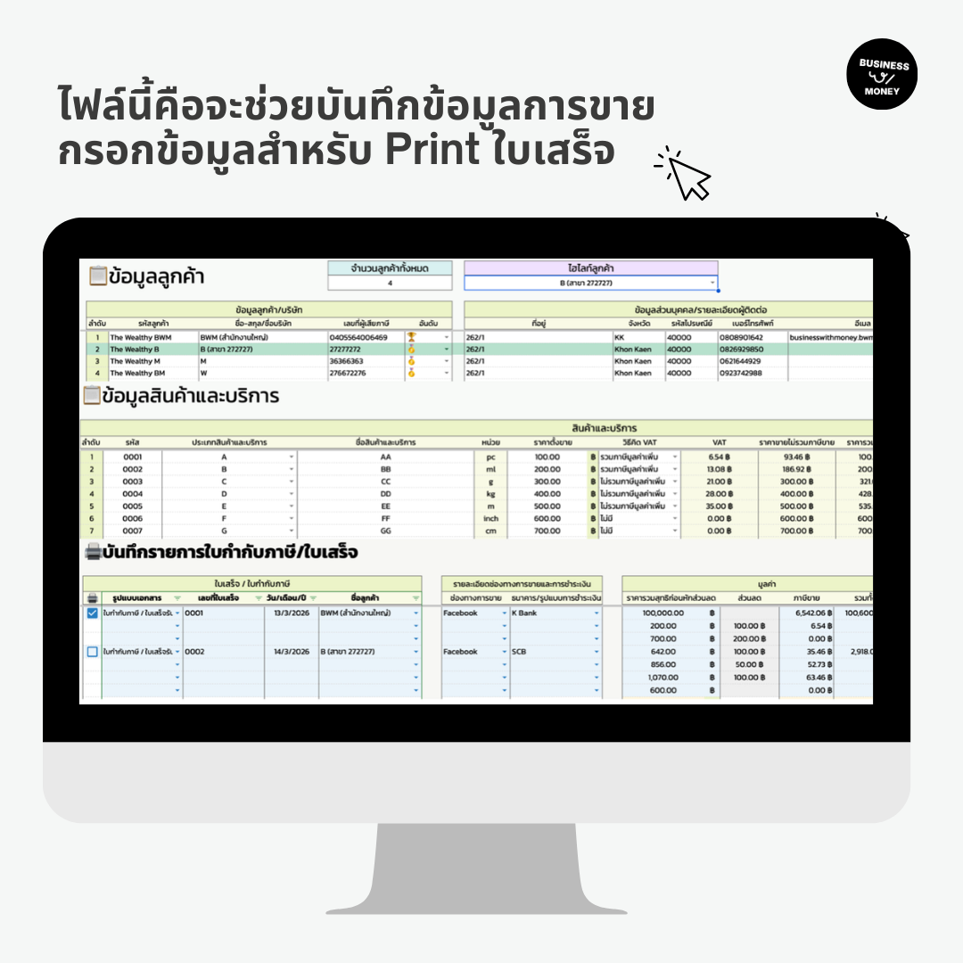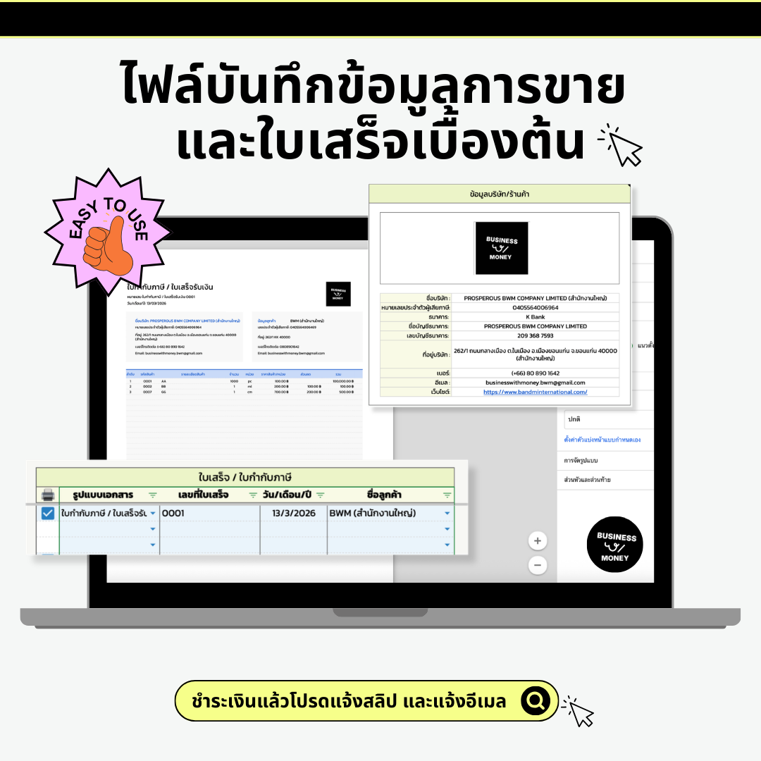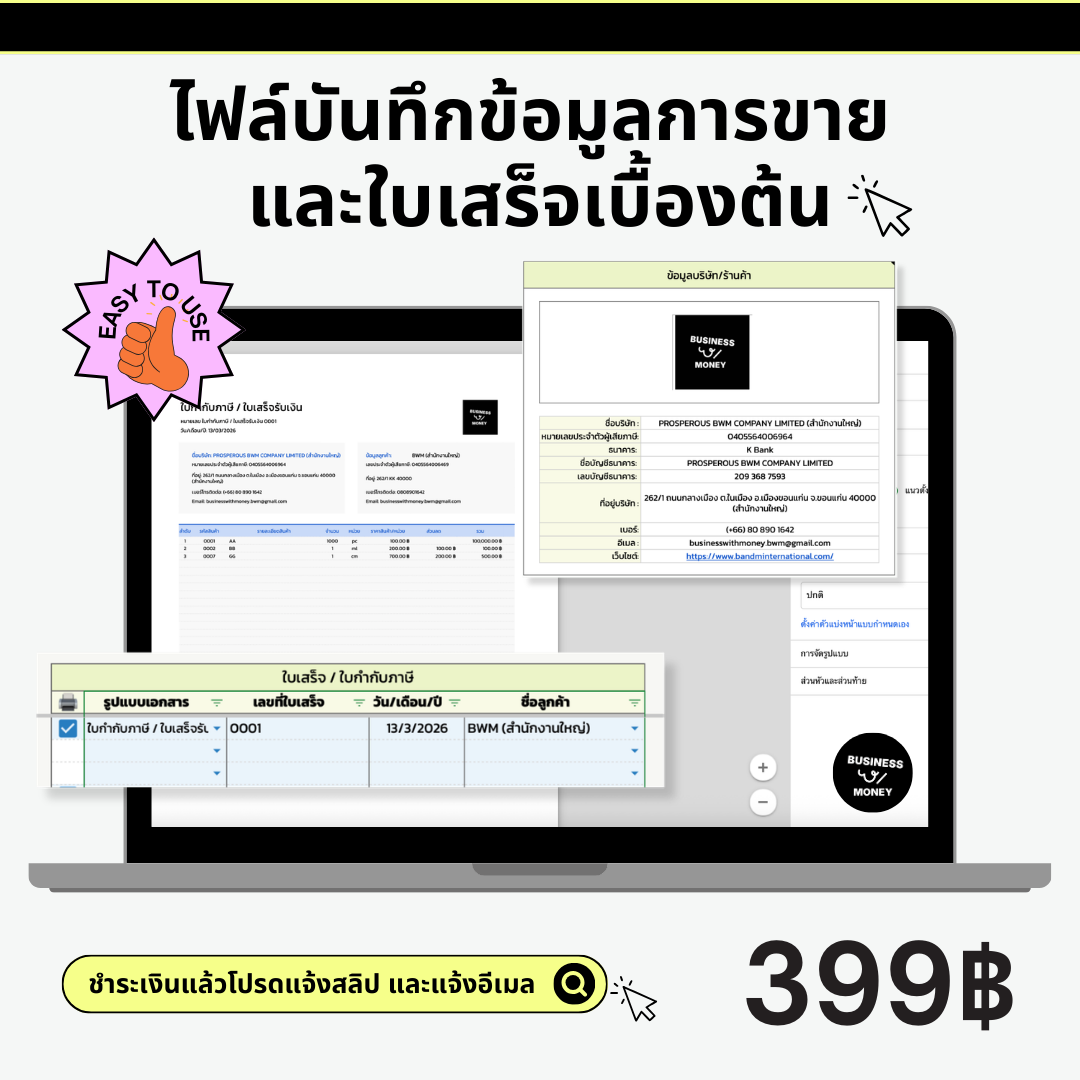 🧾 ไฟล์บันทึกข้อมูลการขายและใบเสร็จ BY BWM – 399 บาท