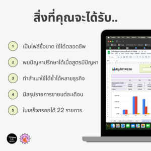 ไฟล์เป็นแบบซื้อขาด ใช้งานผ่าน Google Sheets ชำระเพียงครั้งเดียว สามารถใช้งานได้ตลอด ไม่มีค่าใช้จ่ายเพิ่มเติม